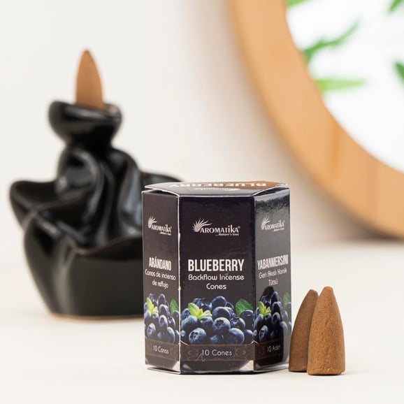 BlueBerry'nin sakinleştirici kokusuyla rahatlayın ve stresten kurtulun. Bu geri akışlı tütsü konileri rahatlamayı teşvik eder ve her alanda huzurlu bir ambiyans yaratır. Özel anlarınızı tatlandıran tütsü ve tütsülükler tutsum.com.tr'de
