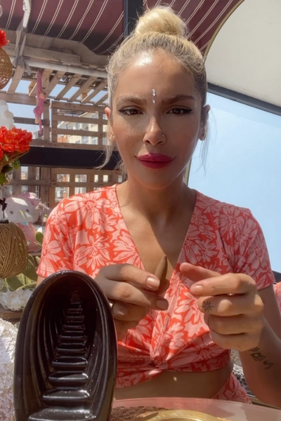 3. Alevi söndürün: Tütsü konisinin ucu kor gibi kızarınca alevi hafifçe üfleyerek söndürün. Uç kısmından ince bir dumanın yükseldiğini göreceksiniz.