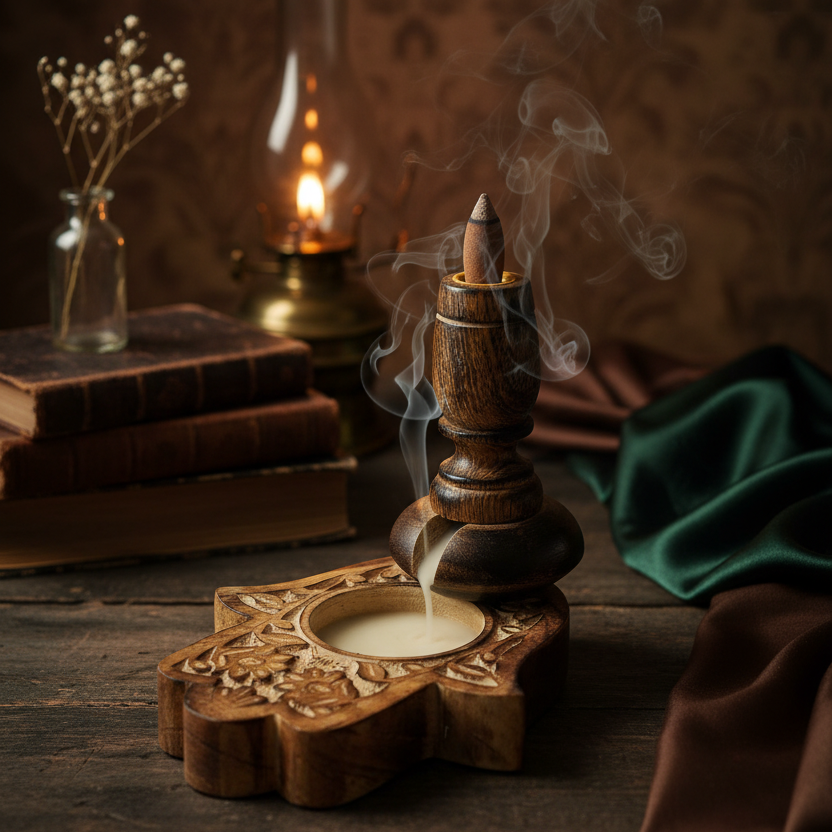 "Akış Tahtı", geleneksel tütsü deneyimini görsel bir şölene dönüştürmek için tasarlandı. Bu model, mum ışığının sıcaklığını ve eski kitapların bilgeliğini yansıtan, oymalı, antik bir şamdan kaidesi formundadır.